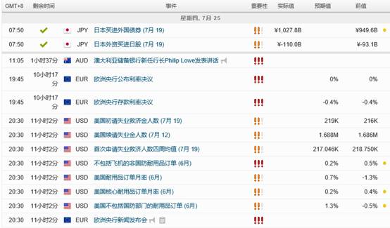 周三(7月24日)美元持稳,在周四欧洲央行和下周美联储货币政策会议前在窄幅区间内交投;欧元兑美元跌至两个月低点,英镑兑美元巨震近百点,盘中一度涨0.7%,创下近一周来的最大涨幅。金价走高,结束连续三个交易日下跌的势头,因市场预期美联储和其他主要央行将采取鸽派的货币政策。油价创下近一周来的最大跌幅。