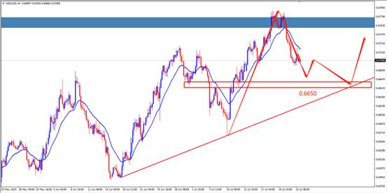 技术点评:H4周期中,纽元上行势态相比澳元更为强劲,短线价格试探前期高点0.6780位置承压回落,下方或测试0.6650附近支撑效果。