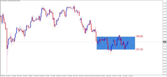 交易策略:激进的投资者可考虑107.30附近做多,止损106.50附近,目标108.80附近。
