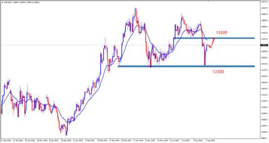 技术点评:D1周期中,价格测试前期低点12370附近企稳,整体市场位于高位宽幅整理,建议投资者关注高抛低吸的机会。