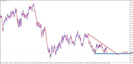 技术点评:W1周期中,本周价格大概率再次测试0.6440支撑位置,关注支撑位反转信号。