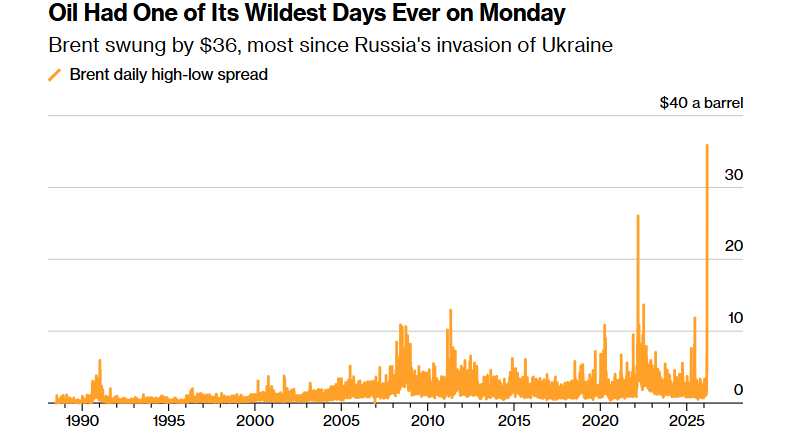当冲突刚爆发时还被视为“最坏情景”的局面,如今已迅速成为现实。周一(3月10日),布伦特原油一度飙升至接近每桶120美元,而在与伊朗开战前,油价还大约处于 72美元/桶 附近。