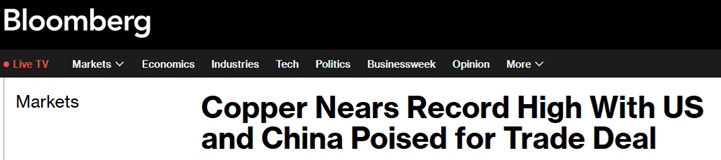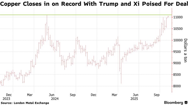 FX168财经报社(亚太)讯 周一(10月27日)亚市盘中,随着美国和中国即将达成一项全面协议以缓解贸易紧张局势,缓解全球经济增长面临的重大风险,铜价正涨向历史新高。